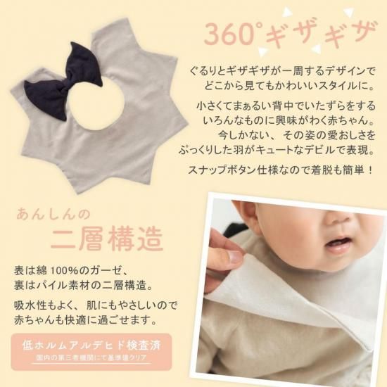 首後ろ部分には、柔らか綿入りのデビルの羽根がついており、プチ仮装ができちゃいます。