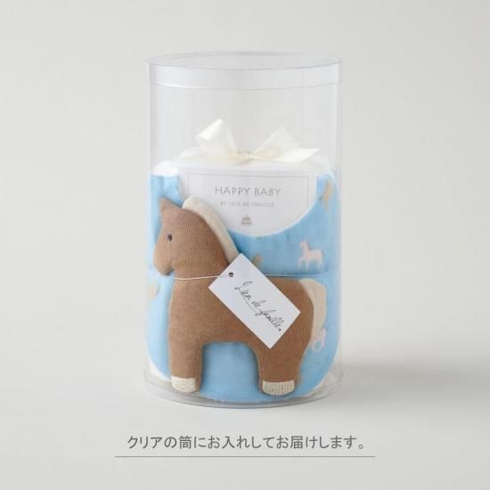 赤ちゃんらしさとおしゃれさを兼ね備えた、やさしい色味のかわらしい馬柄です。