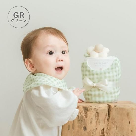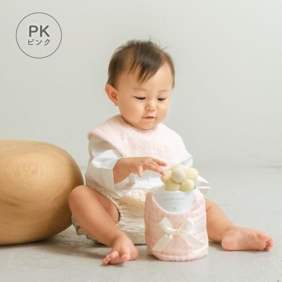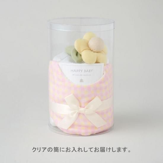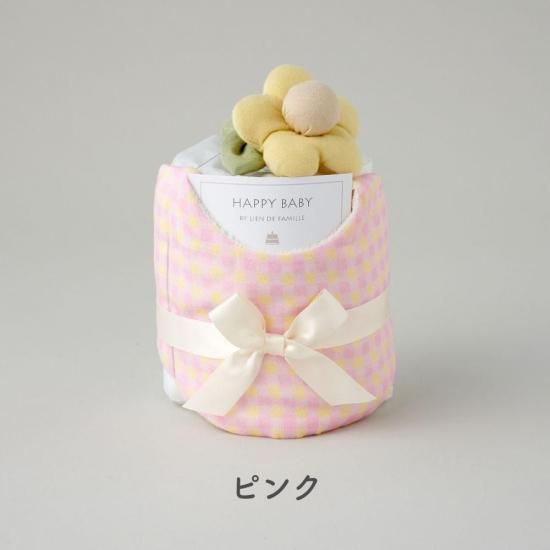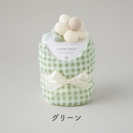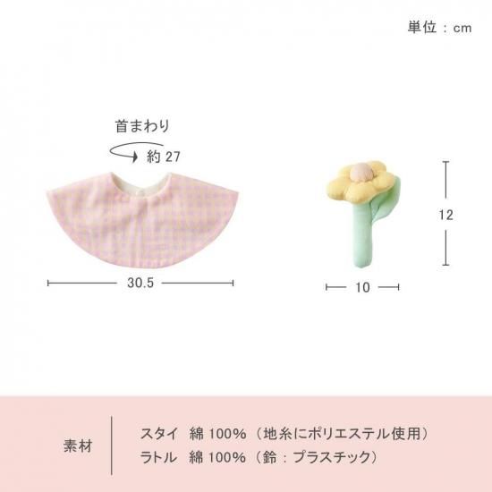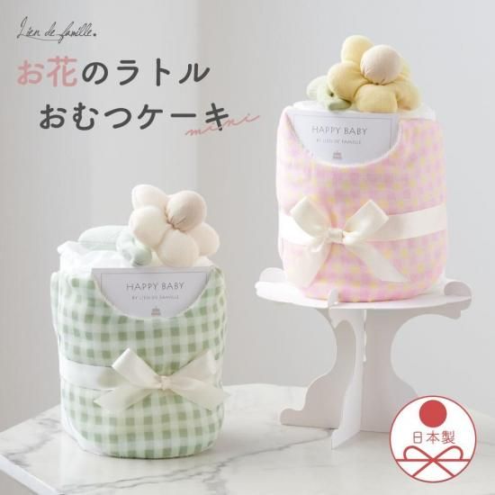 ギンガムチェックスタイとお花のラトルのベビーケーキ|日本製