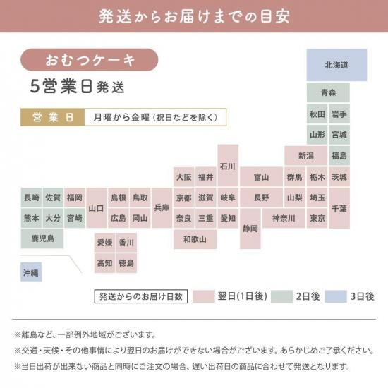 ※沖縄県エリアのおむつケーキの配送は行っておりません。