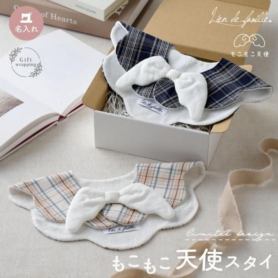 ノベルティ対象商品|タータンチェック柄 もこもこ天使の羽スタイ