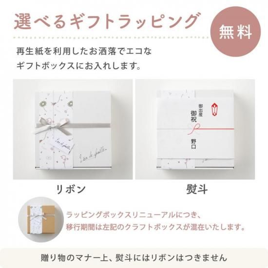 シンプルだけど素材感で高見えでき、オプションで名入れ刺繍も可能なので、出産祝いの特別なギフトにぴったり!